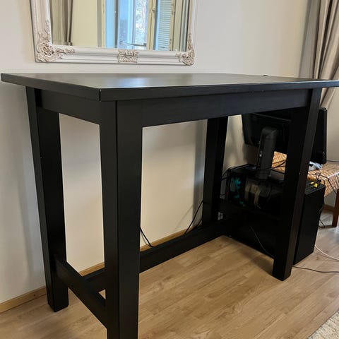 IKEA pöytä kahdella baarijakkaralla, pöydän pinnassa hieman pieniä käytönjälkiä, muuten hyvässä kunnossa.