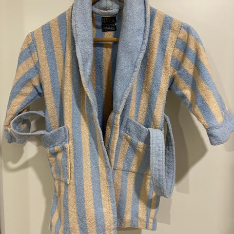 Myydään noin 100cm (kokolappu puuttuu) Ratian kylpytakki. Käytetty mutta ehjä ja kunnollinen.