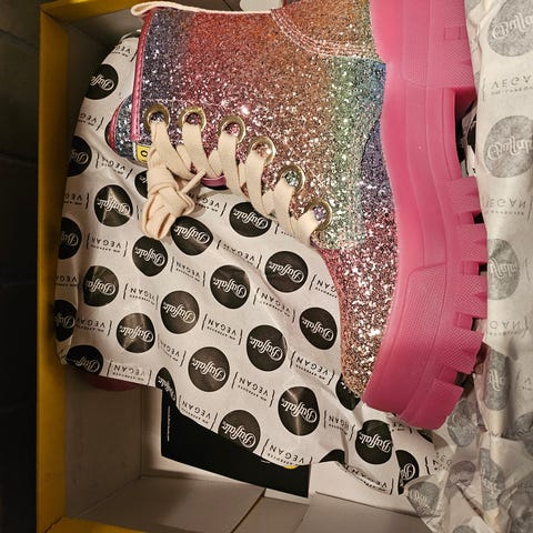 Vain jalkaan sovitettu. Hintalappu kiinni. Laatikkoa ei ole liikkeestä saatu eli oikeaa kenkälaatikkoa ei ole.
