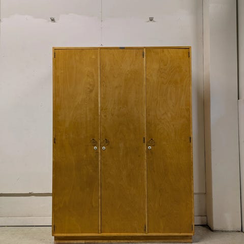 Hieno 50-luvun kotimainen vaatekaappi uuteen kotiin. Avain tallessa ja lukitus toimii ovessa. Rakenne kaikin puolin ehjä ja tukeva. Kuvien mukaista käyttökulumaa pinnassa. Yleisilme ikäisekseen siisti. Ei hajuja.