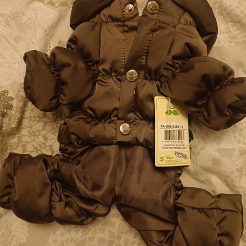 Käyttämätön puku ,jossa hintalappu kiiinni.