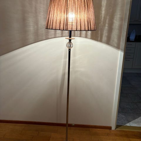 150 cm korkea jalkalamppu. Vaihdettava valo. Lampun korkeutta voi säätää puolessa välissä olevan ruuvin avulla. Voin tarvittaessa purkaa valon kuljetusta varten.
