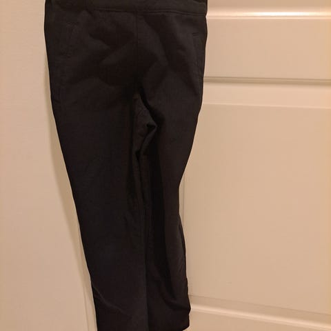 Softshell -tyyppistä kangasta. Toisessa polvessa pieni reikä.