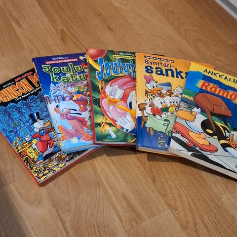 Kirjat ovat tyydyttävässä kunnossa. Kuluneita, kulmat ovat ottaneet osumaa ja osassa on teippiä kannessa. Sivut ovat kuitenkin kaikki tallella.