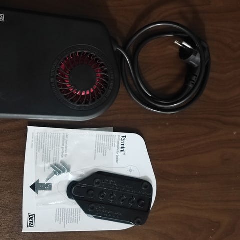 Defa Termini lämmitinpaketti sisältää lämmittimen, kiinnitystelineen, virtajohdon ja asennustarvikkeet. Laite toimii 230V AC jännitteellä ja on tarkoitettu esimerkiksi auton lämmitykseen tai vastaavaan käyttöön.