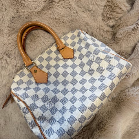 Myydään Louis Vuitton Speedy 25 käsilaukku. Laukussa on klassinen Louis Vuittonin kuviointi ja nahkaiset kantokahvat.