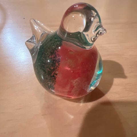 Myydään neljän (4) kappaleen erä suomalaisia lasisia koriste-esineitä / lasilintuja.