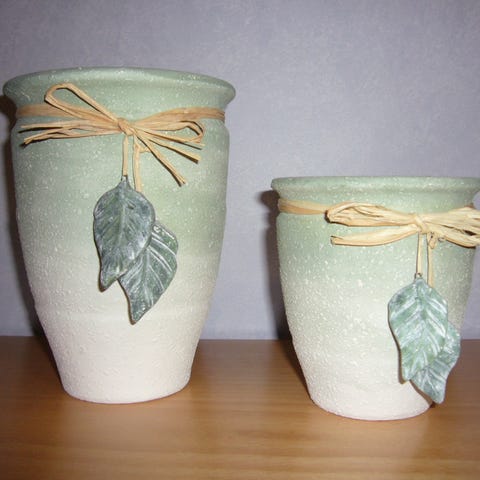 Kaksi suurehkoa metallinhohtoista maljakkoa/koriste-esinettä, joiden halkaisija on n. 25cm. Myydään molemmat pakettina, yhteensä 20e.