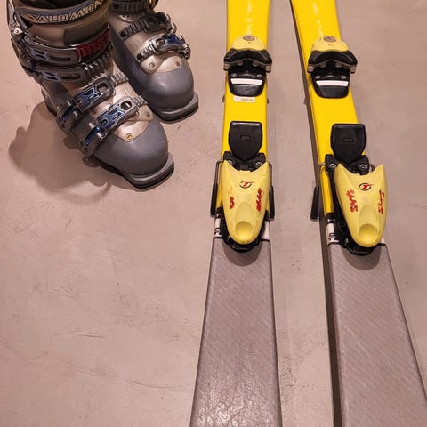 Käytetyt laskettelusukset ja monot. Menee hyvin seuraavalle.