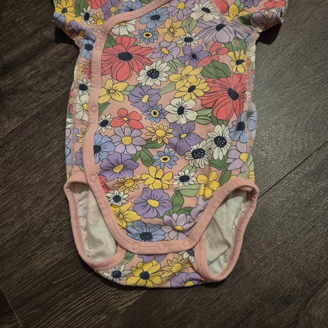 Polarn O. Pyret Kirjava lasten body, koko 68 cm, valmistettu puuvillasta. Väritys on monivärinen kukkakuosi. Sopii tytöille ikähaarukassa 4-6 kuukautta.