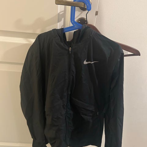 Nike juoksutakki unisex, lasten m eli 137-147cm. Takissa on vetoketjullinen etuosa, huppu ja sivutaskut. Värit harmaa, musta ja valkoinen. Soveltuu juoksuun ja muuhun ulkoliikuntaan.