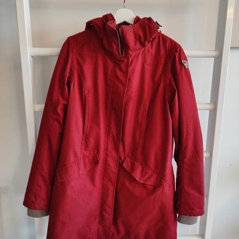 Mydään naisten Icepeak lämmin toppatakki, koko on 40. Muuten on tosi hyvä,mutta jotkut haaleahkot tahrat on edessä. Käynyt pesussa käytön jälkeen.