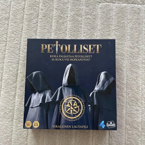 Petolliset virallinen lautapeli 4-6 pelaajalle, ikäsuositus 12 vuotta ja yli. Peli kestää noin 60-90 minuuttia. Peli sisältää kortteja ja pelilautaa, jossa pelaajat kilpailevat kuka paljastaa petolliset ja kuka vie voiton.