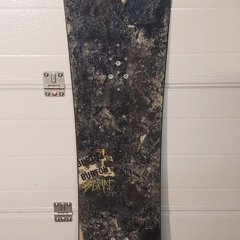 Käytönjälkiä mutta toimii. Muutamana talvena laskettu. Joitakin naarmuja pohjassa ja yksi naarmu paikattava ens kerralla huollossa jos haluaa. Burtonin iso jalkamatto liimattu lautaan. Huollon kautta hyvä työkalu. Siteitäkin tarvittaessa löytyy. Nouto ja käteinen tasarahana.