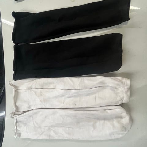 OKK logolla Jääkiekko pelisukat keltaiset ja vihreät. Toisessa sukkaparissa on käytön jälkiä, kuten pieni reikä. Näiden sukkien hinta 5€. Toiset uudenveroinen ja hinta 9€. Sopivat jääkiekkoiluun polvisuojien päälle.