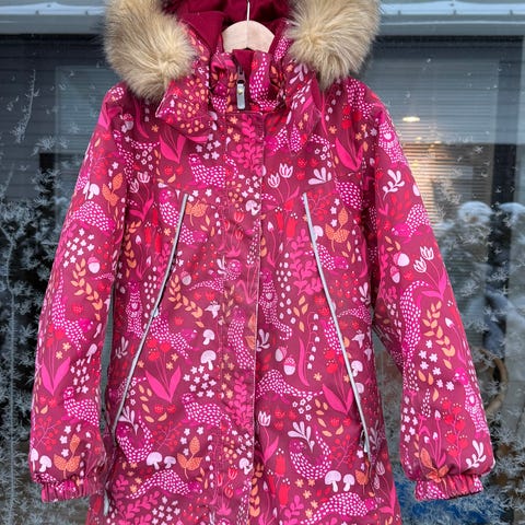 Hyväkuntoinen ja lämmin Reima toppatakki 134cm. Irroitettava huppu ja karvakaulus.