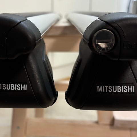 Mitsubishi-kattoteline, 140 cm, kiinnitys kattokaiteeseen, sopii myös muihin merkkeihin, leveys säädettävissa, lukittava