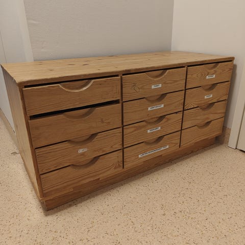 Myydään lapsen huoneessa ollut laatikosto. On osumaa ja kulumaa, mutta sisältä siistissä kunnossa ja pienellä hiomalla saa taas näyttäväksi.