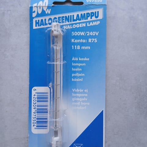 2 x 500W halogeenilamppu / R7s-kanta. Elman.