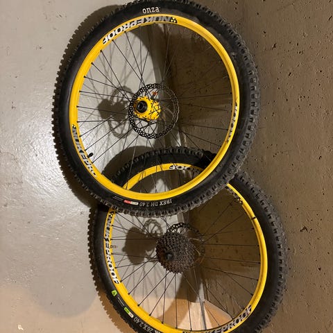 Myydään vanhat mutta kestävät 26 tuumaset dh/freeride vanteet kumeineen päivineen mavic sekä shimano xt