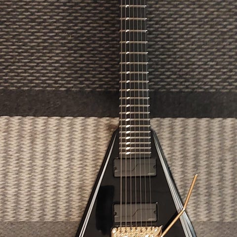 Muutama dingi ja otelaudassa vähän värjäytymää, näkyy kuvissa, mutta ei isompia, yleisilmeeltään oikein siisti. Ollut mulla noin 15 vuotta, nyt vaan niin kauan seisonut että pitää poistaa telineestä uusien edestä.