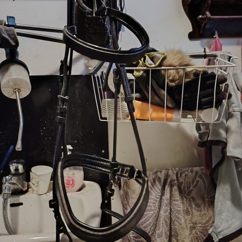 Pieni full, poskihihnat puuttuvat. Siistit ja ehjät, kaunis tikkaus turpahihnassa. Väri ruskea.