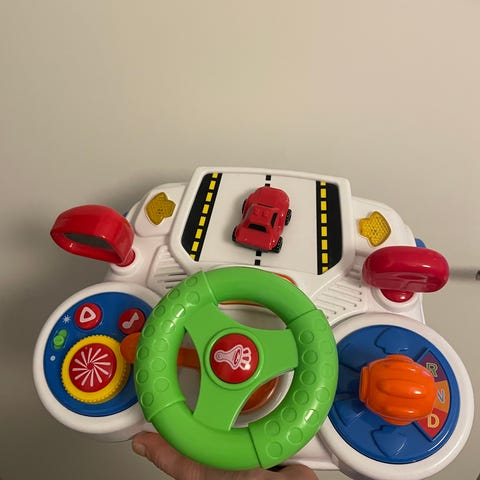 Kovalla ajolla ollut, mutta edelleen toimiva peli seuraavalle leikkijälle. Renkaat pyörii hyvin. Toinen sivupeili ja turvavyöt jääneet kovassa vauhdissa matkalle.