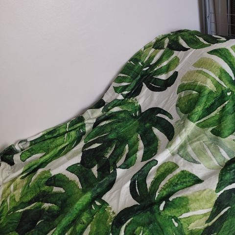 Kaksipuolinen, pehmeä fleecepeitto. Toisella puolella pandoja leikkimässä, toisella puolella pilviä. Peiton koko 1,60m x 2,00m