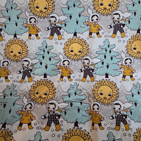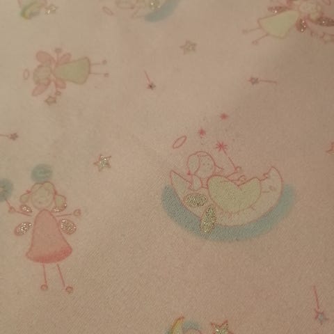 Ihana tyttöaiheinen trikookangas. Koko n. 90 cm × 1,70 m. Postitus onnistuu.