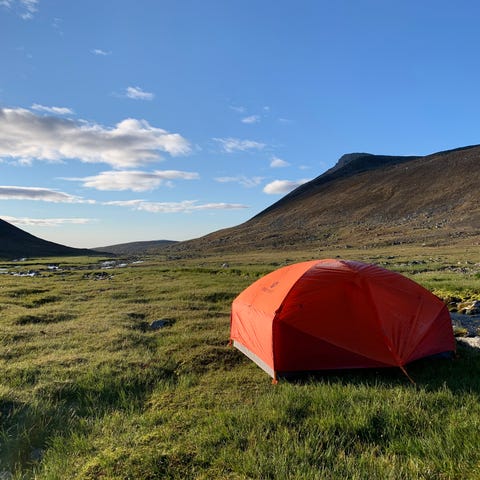 Marmot Limelight 2P teltta, joka on kaksipaikkainen ja kevyt. Teltta on väriltään oranssi ja keltainen. Mukana tulee jalustaverkko ja kuljetuspussi. Teltta soveltuu retkeilyyn ja ulkoilmakäyttöön.