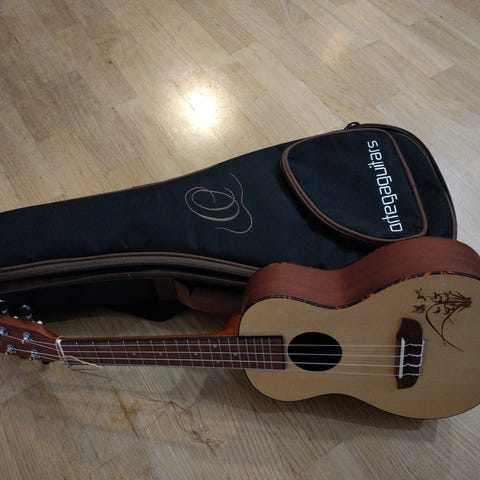 Guitalele akustinen kitara, kompakti koko ja luonnollinen puun väri. Sopii erityisesti matkakäyttöön tai pienempään käteen.