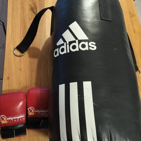 Musta nyrkkeilysäkki, jossa on mukana ketju ripustamista varten. Sopii nyrkkeilyharjoitteluun.Paino on noin 25kg. Mieluiten nouto