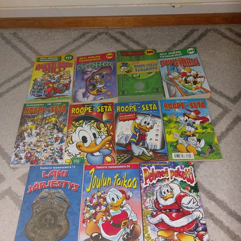kaksi Aku-palat-sarjakuvalehteä, Magiaa mahan täydeltä" ja "Penninvenyttäjä. Hyvässä kunnossa. Nouto tai postitus