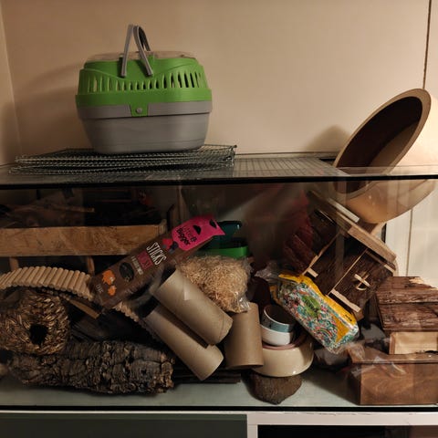 Itsetehty suuri terraario ja tarvikkeet kahdelle asukkaalle. Itsellä ollut käytössä kääpiöhamstereilla, sopii hyvin myös mm. muille jyrsijöille ja pieneläimille. Ollut käytössä n. vuoden ajan. Toiminut oikein hyvin, myydään tarpeettomaksi jääneenä.