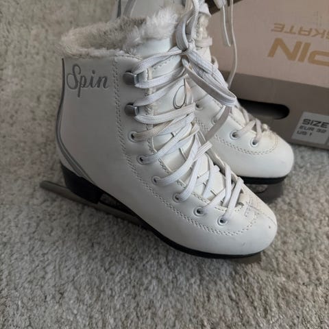 Lasten säädettävät kaunoluistimet. Voidaan säätää kokoon 32-35. Topatut luistimet, lämpimät ulkojäillä. Terät hyvässä kunnossa + suojat.