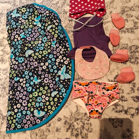 Ulkoiluun takki ja housut, pipo, lapaset ja villasukat,