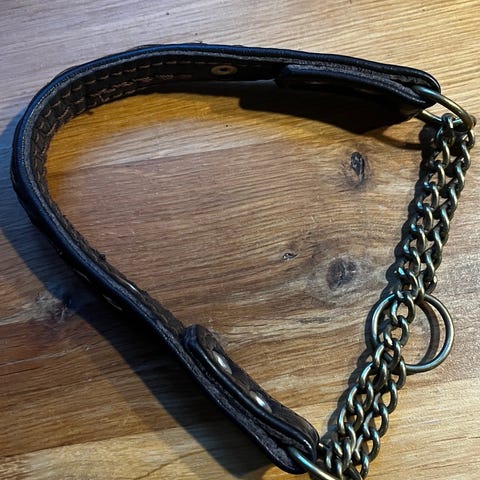 Nahkainen koiran panta ketjulla