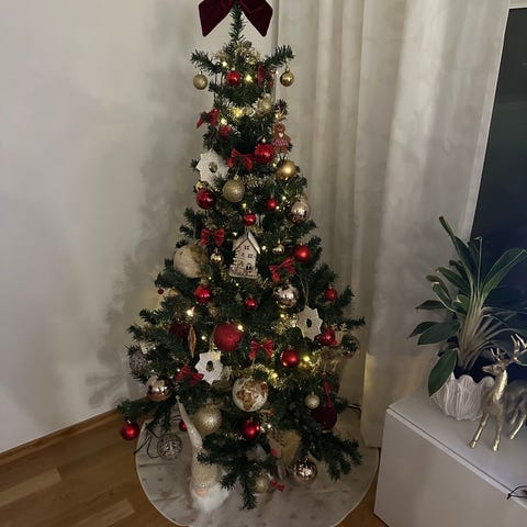 Myydään kuvan tekokuusi. Sisältää alkuperäisen jalan ja laatikon. Korkeus 135cm ja leveys 90cm. Hyvä kuntoinen, myydään tarpeettomana.