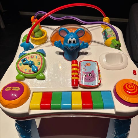 Interaktiivisuus: Pöydässä on pianon koskettimet, käännettävä kirjan sivu ja useita nappeja, jotka tuottavat ääniä.