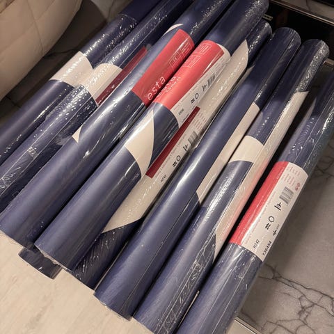 Esta home tähti tapettia kaksi rullaa. Toinen avattu vain kuvausta varten. Valkoinen pohja missä metallin sävyinen tähti.