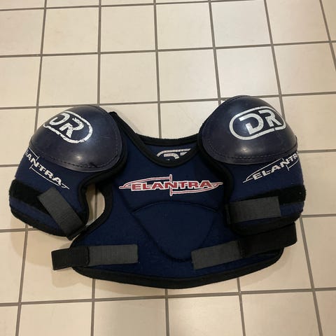 Annetaan seuraavalle pelurille polvisuojat, koko 25 cm (pelaajan pituus noin 130-130 cm) ja kaulasuoja, koko 26-35 cm.