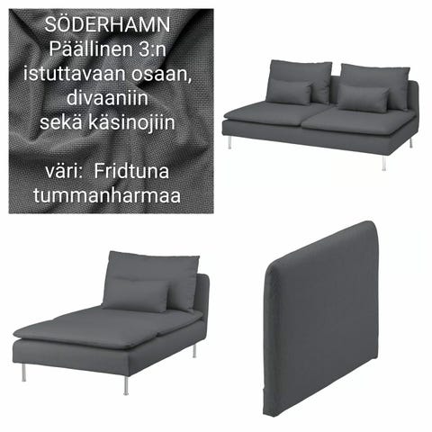Ostetaan Ikea Söderhamn päälliset sävyssä Samsta Orange. Hakusessa 1kpl kolmen istuttavaan sohvaan. Mieluiten kohtuullisen hyvässä kunnossa.