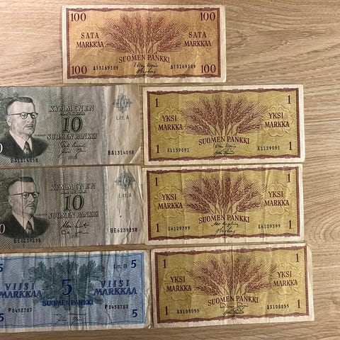 Suomen Markka Setelit 10,20,50 ja 100mk