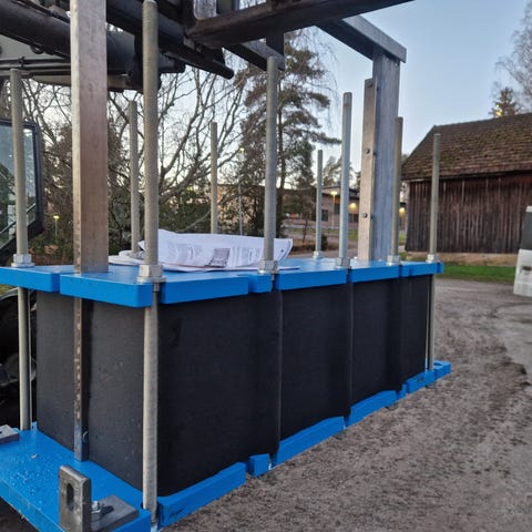 Eriste elementti ja 1” putkiliittimet paikoillaan. Kaasuyhteet suojatulpilla.