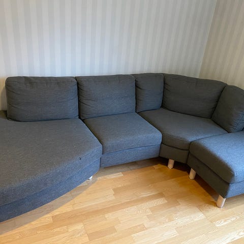 Harmaa kulmasohva, jossa on vuodemekanismi. Sohvassa on irrotettavat selkätyynyt ja se voidaan muuttaa vuoteeksi. Sopii olohuoneeseen ja tarjoaa istumapaikkoja sekä lisävuodevaihtoehdon.