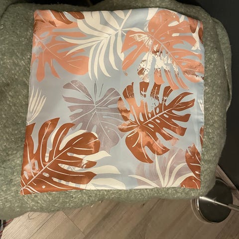 Vaaleansinisen/kuviollinen sisustyynyliina setti jota voi käyttää myös kesällä ulkona. Ei siedä sadetta mutta kylläkin kosteutta.