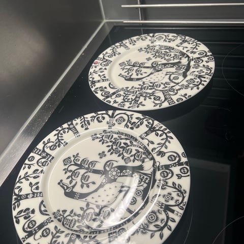Iittala Taika sininen lautanen 22 cm ja pieni kulho 0,3l. Todella vähän käytetty, värit kirkkaat. Yhteensä 30€, lautanen 17€, kulho 16€.