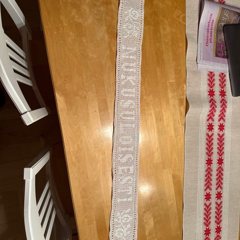 Kolme virkattua pientä pitsiliina