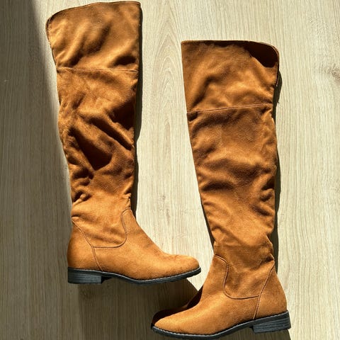 Mokka pinta ja varressa tekokarva. Varren ymp; noin 37. Koko 37-38. Lämmin vuori.