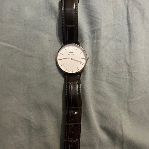 Myydään Daniel Wellingtonin naisten rannekello. Musta nahkainen hihna ja hopeinen kellotaulu timanteilla. Paristo simahtanut. Alkuperäinen laatikko ja kellon paperit mukana. Nouto Riihimäen Peltosaaresta tai postitus.